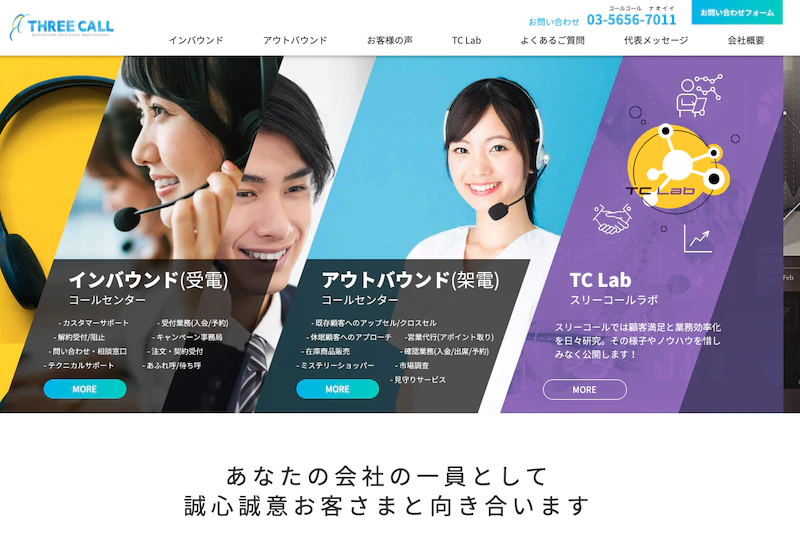 スリーコール | 要問い合わせ | 1,000円〜 | スポット対応から100席以上の大規模対応も可能・柔軟なプラン提案・インフォマーシャル〜カスタマー対応 |