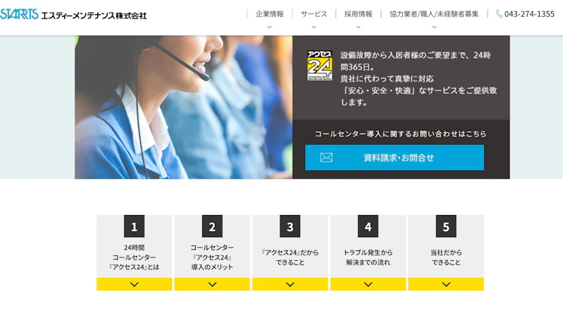 エスティーメンテナンス株式会社が提供する「アクセス24」サービスは、スターツグループとして30年以上の賃貸管理のノウハウを活かし、24時間365日対応の不動産・賃貸管理向けコールセンターを運営しています。