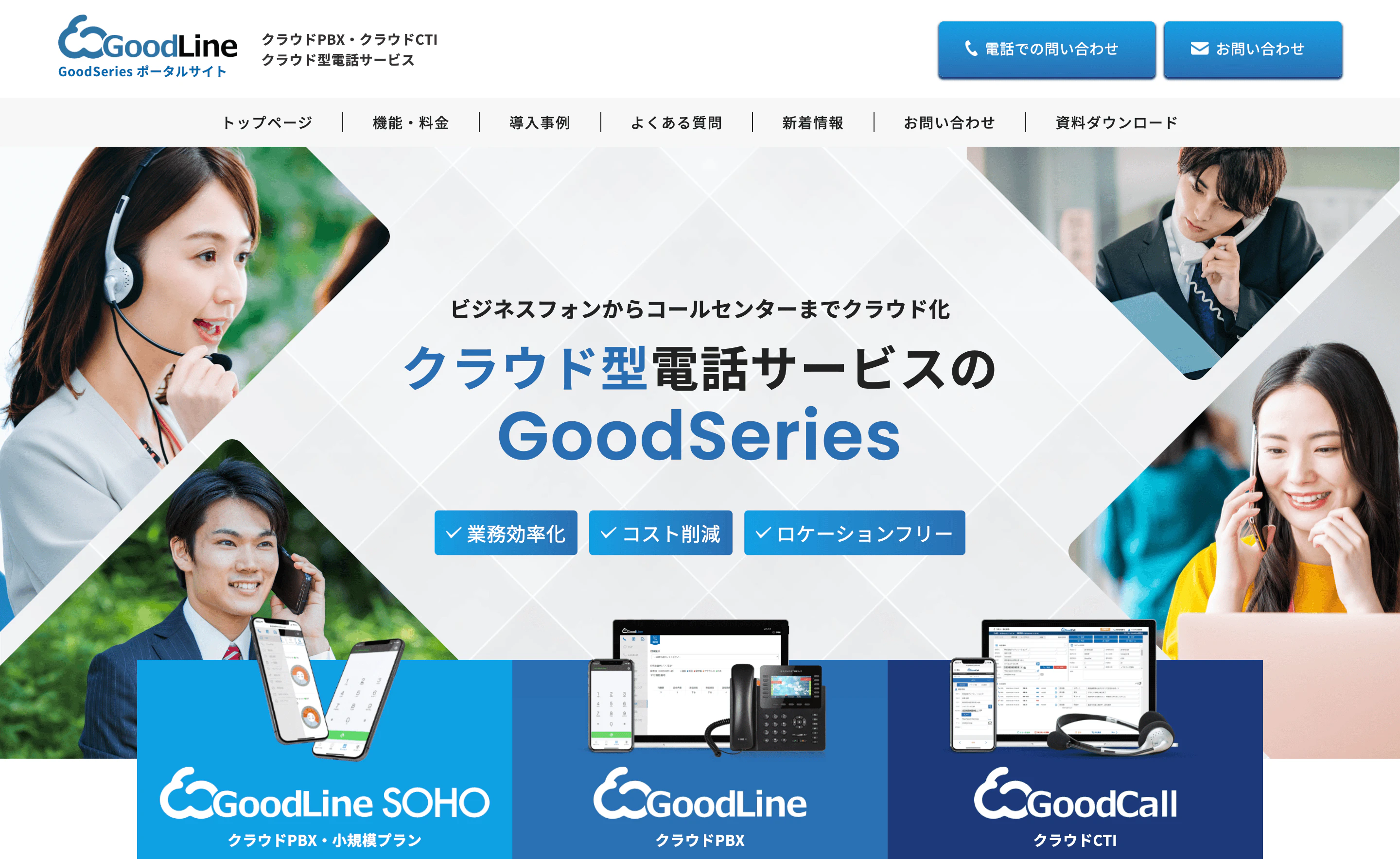 GoodLineは、コールセンター向けのプランと小規模企業向けのプランを用意しており、利用しやすいサービスに定評があります。社員のステータスを確認できる機能があります。すでに利用中の電話番号をそのまま利用したり、新しく電話番号やフリーダイヤルを発行するサービスもあります。