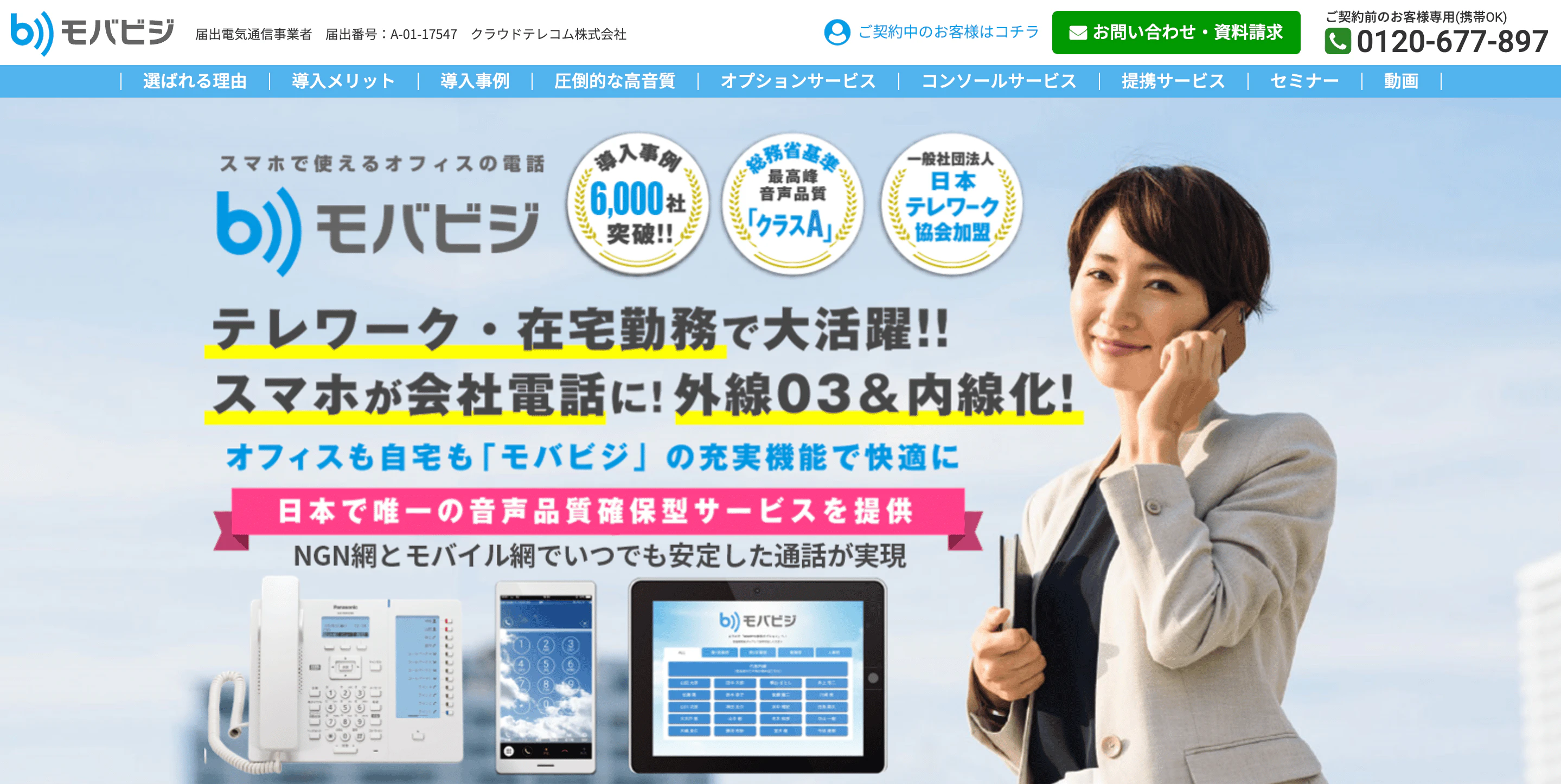 モバビジ | 0円 | 850円〜 | スマホ連携, ひかり電話回線 | 要問合せ |