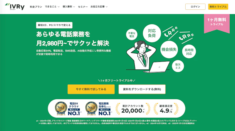 今すぐアカウントをつくる電話対応の効率化を実現!