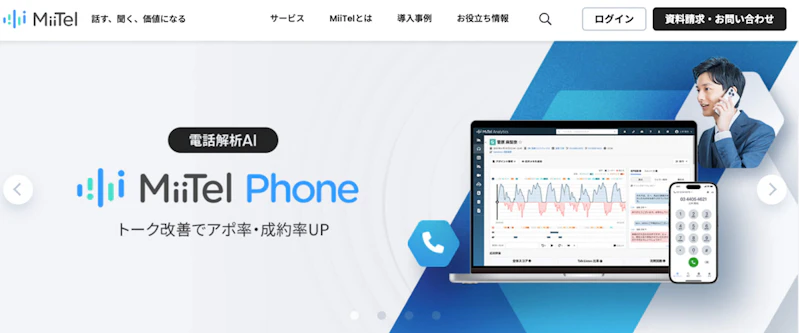 「MiiTel(ミーテル)」は、初期費用無料、月額5,980円というシンプルな料金体系のIP電話アプリです。IP電話の基本的な機能に加えて、通話の自動録音や文字起こし、スマホアプリ、トーク解析など、高機能なサービスが搭載されています。