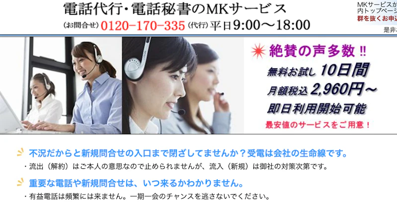 MKサービス」は株式会社ケイズプランニングが提供する、月額3,180円から利用できる電話代行サービスです。